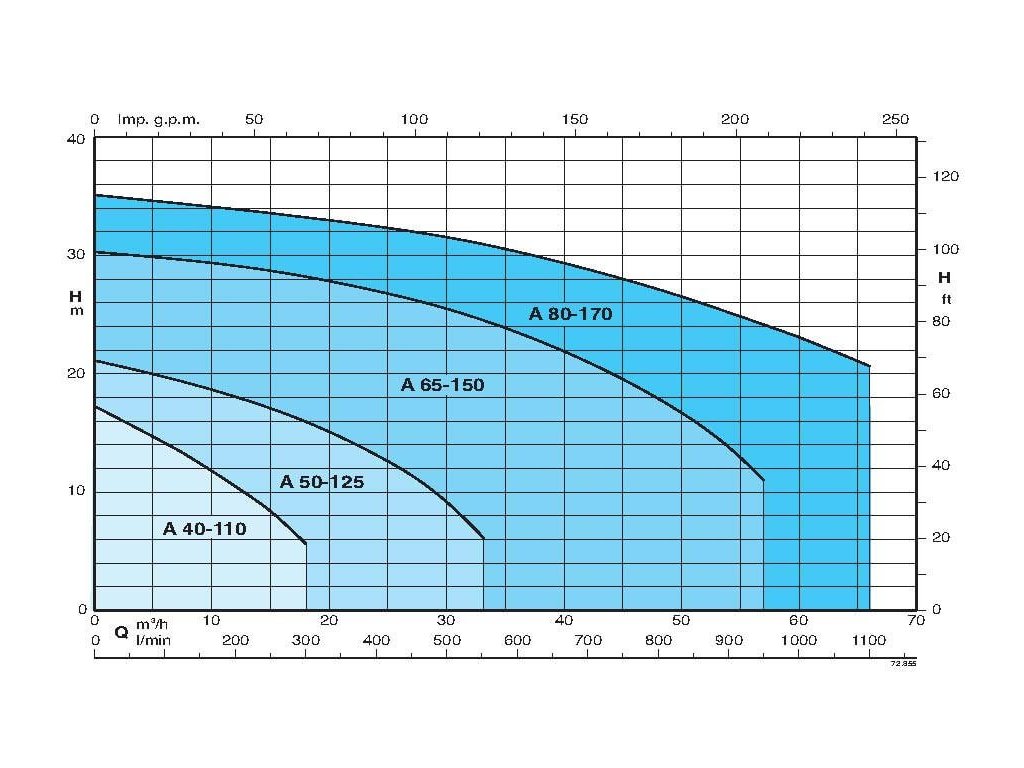 • Pro čistou nebo lehce znečištěnou vodu s možným obsahem pevných částic do velikosti 10 mm pro A 50-125 a 15 mm pro A 65-150