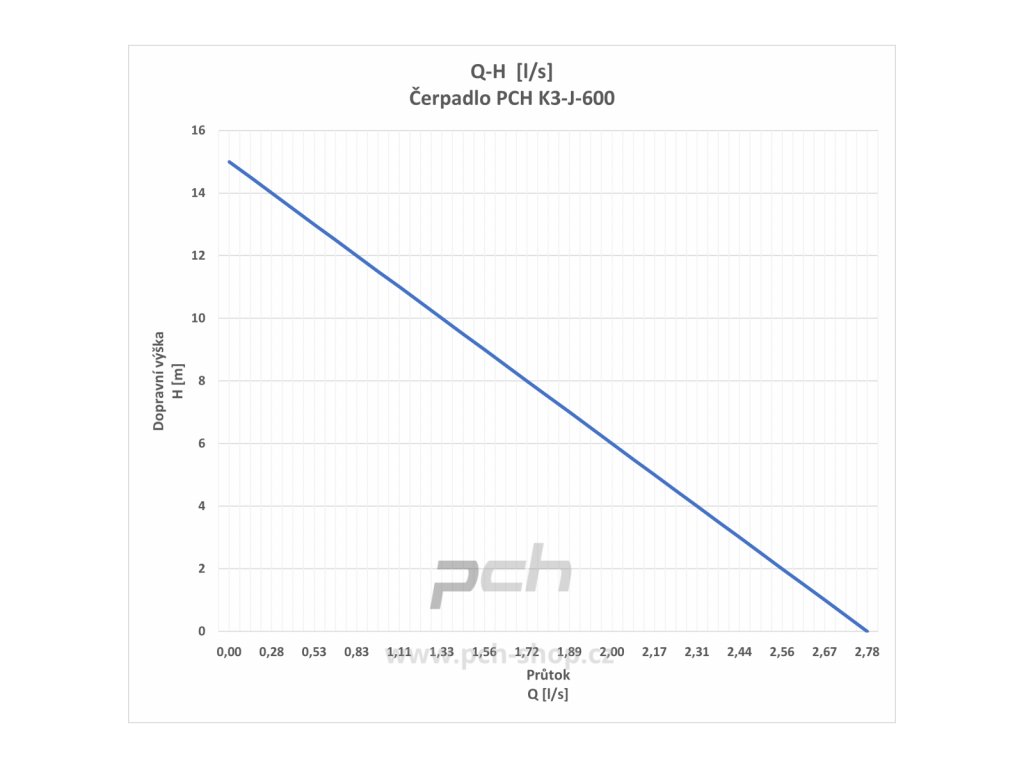 - Ponorné kalové čerpadlo PCH K3-J-600-P vyniká zejména vysokým průtokem až 10 l za vteřinu a dopravní výškou až 15 m.