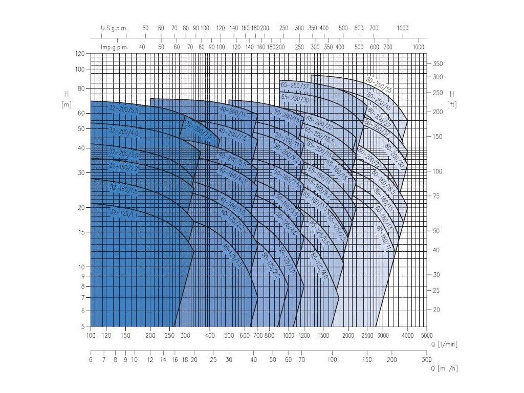 - Těleso čerpadla, oběžné kolo, víko tělesa a hřídel z AISI 304 (Ebara řada 3), z AISI 316L (Ebara řada 3L)