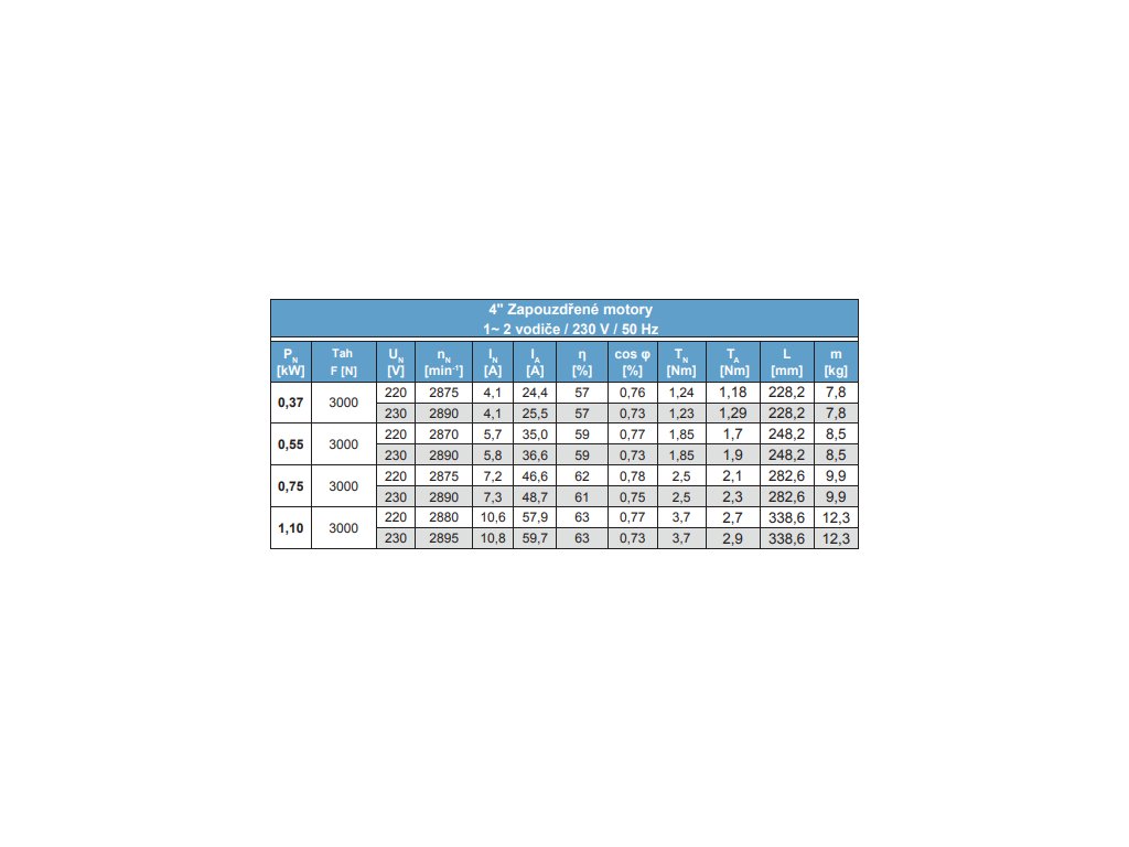 | Jmenovitý výkon motoru - P2 (kW): | 0,55 |