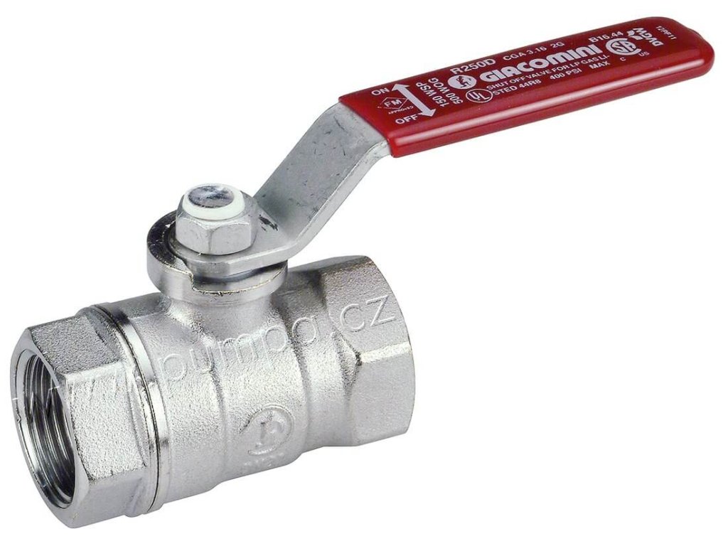 GIACOMINI R250D 1/4" červený kulový kohout, PN 42, t 185 C, chromovaný