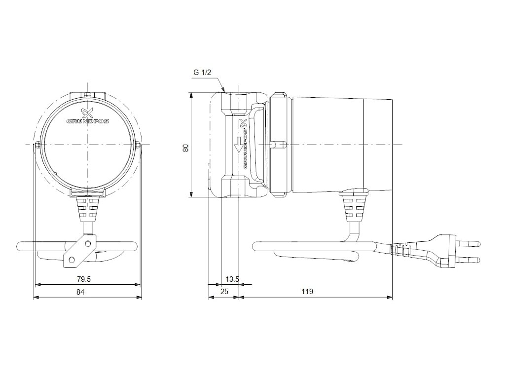 Grundfos COMFORT 15-14 B 230V 80mm Rp1/2" kabel 1,5m