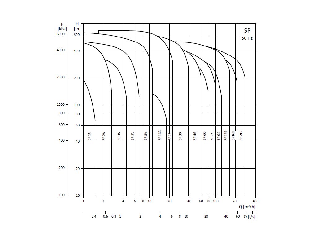 Díky optimalizované konstrukci hydrauliky poskytuje SP optimální účinnost a nízké provozní náklady a vysokou provozní spolehlivost. Tato čerpadla jsou vhodná pro různé oblasti použití jako čerpání podzemní vody ve vodohospodářství, zavlažování, snižování hladiny podzemní vody, zvyšování tlaku a průmyslových aplikacích.