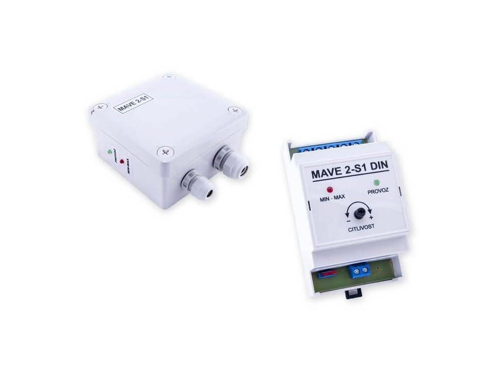 Limitní snímání jedné havarijní hladiny (min/max). Pro připojení jedné vodivostní sondy MAVE. Možnost nastavení vstupní citlivosti snímání pro aplikace, kde se používá upravená voda. Snímače hladiny MAVE 2-S1 se vyrábějí v provedení pro vnější montáž na pevnou podložku nebo pro montáž do rozvaděče na DIN lištu 35 mm (označení DIN).