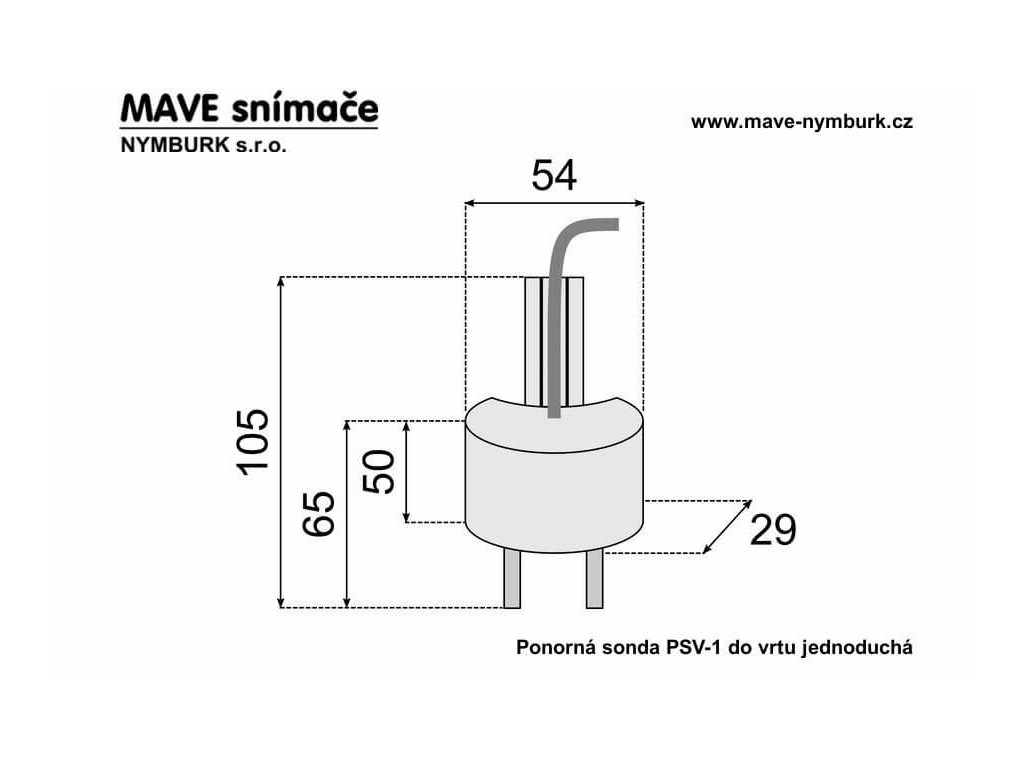 Snímání jedné hladiny ve vrtech od průměru 80 mm. Ponorná sonda PSV-1 se vyrábí s kabelem atestovaným do pitné vody. Sonda se připevní vázacími páskami na potrubí ve vrtu. Ponorné vodivostní sondy se dodávají jako celek s již zalitým kabelem požadované délky (násobky 5 m, viz Technické údaje). Při objednání je nutné uvádět typ sondy a požadovanou délku kabelu. Přehled všech vyráběných délek ponorných vodivostních sond a ceny sond včetně kabelu příslušné délky naleznete ve variantách zboží.