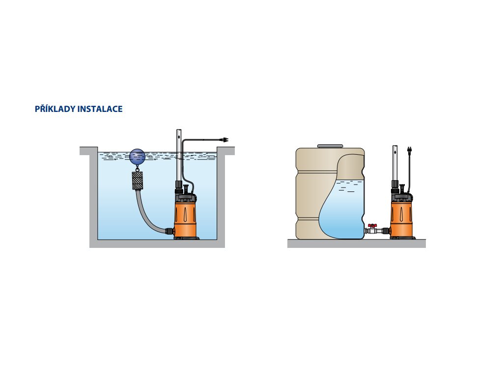 Délka přívodního kabelu 10m .Dvojitá mechanická ucpávka v olejové lázni. Vestavěná zpětná klapka na výtlaku čerpadla.