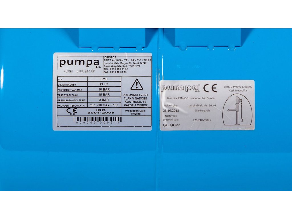PUMPA blue line vodárna PTM60-1 PUMPA 24l ležatá 230V 1,4-2,8bar