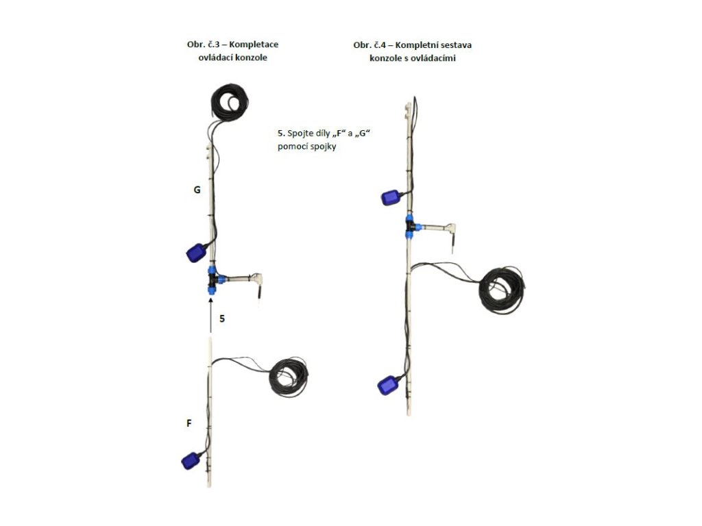 - Snímání hladiny pomocí 2 ks plovákových spínačů