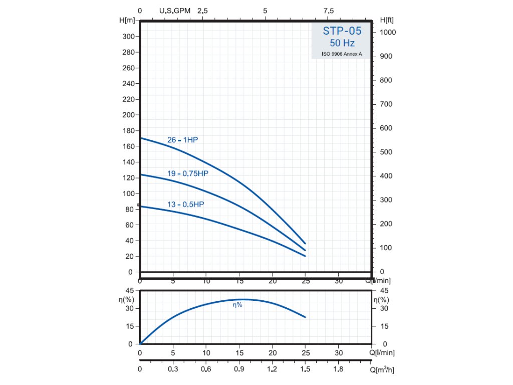 PUMPA INOX LINE STP-0526 4" 0,75kW 230V 2-drátový motor PSM4M, ponorné čerpadlo, 50m kabel