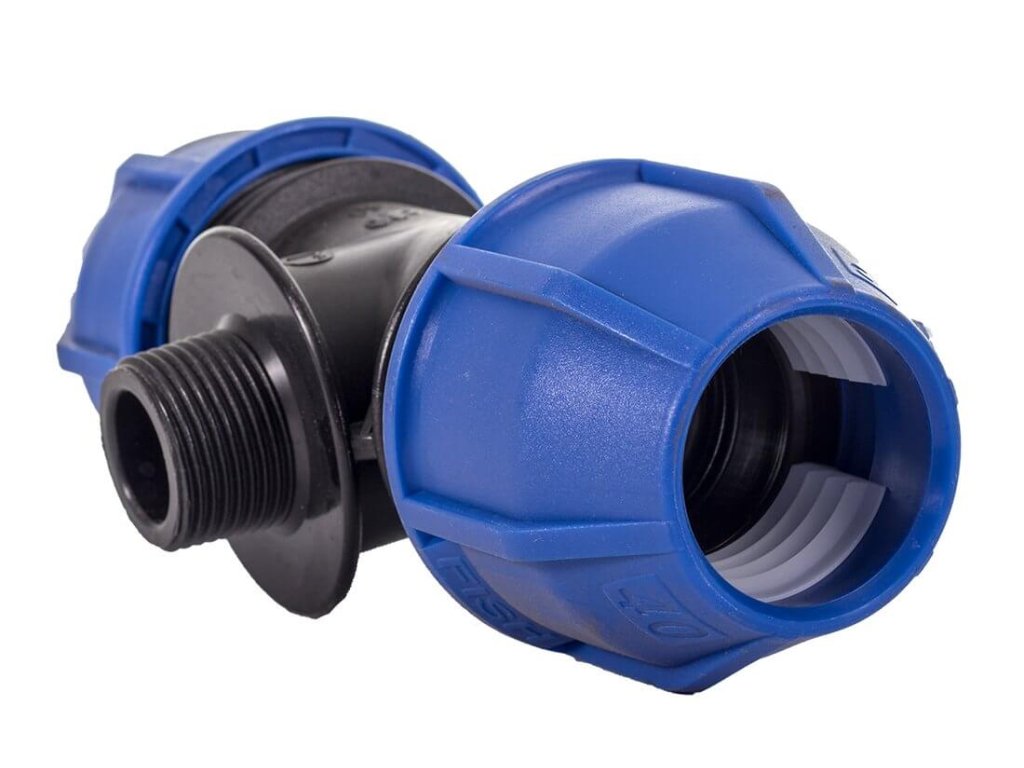 T-kus s vnějším závitem (dvě strany HDPE, jedna strana závit).
